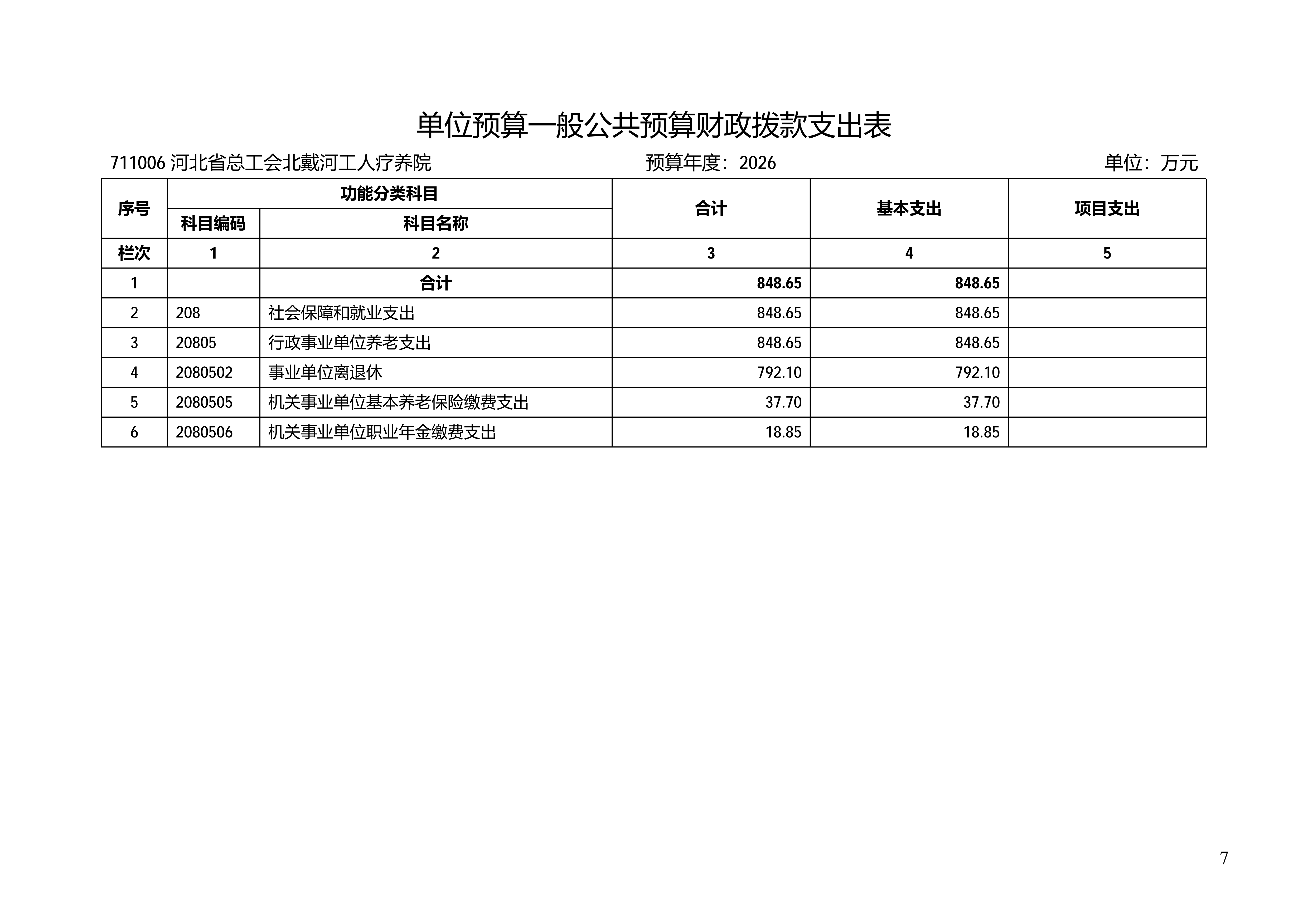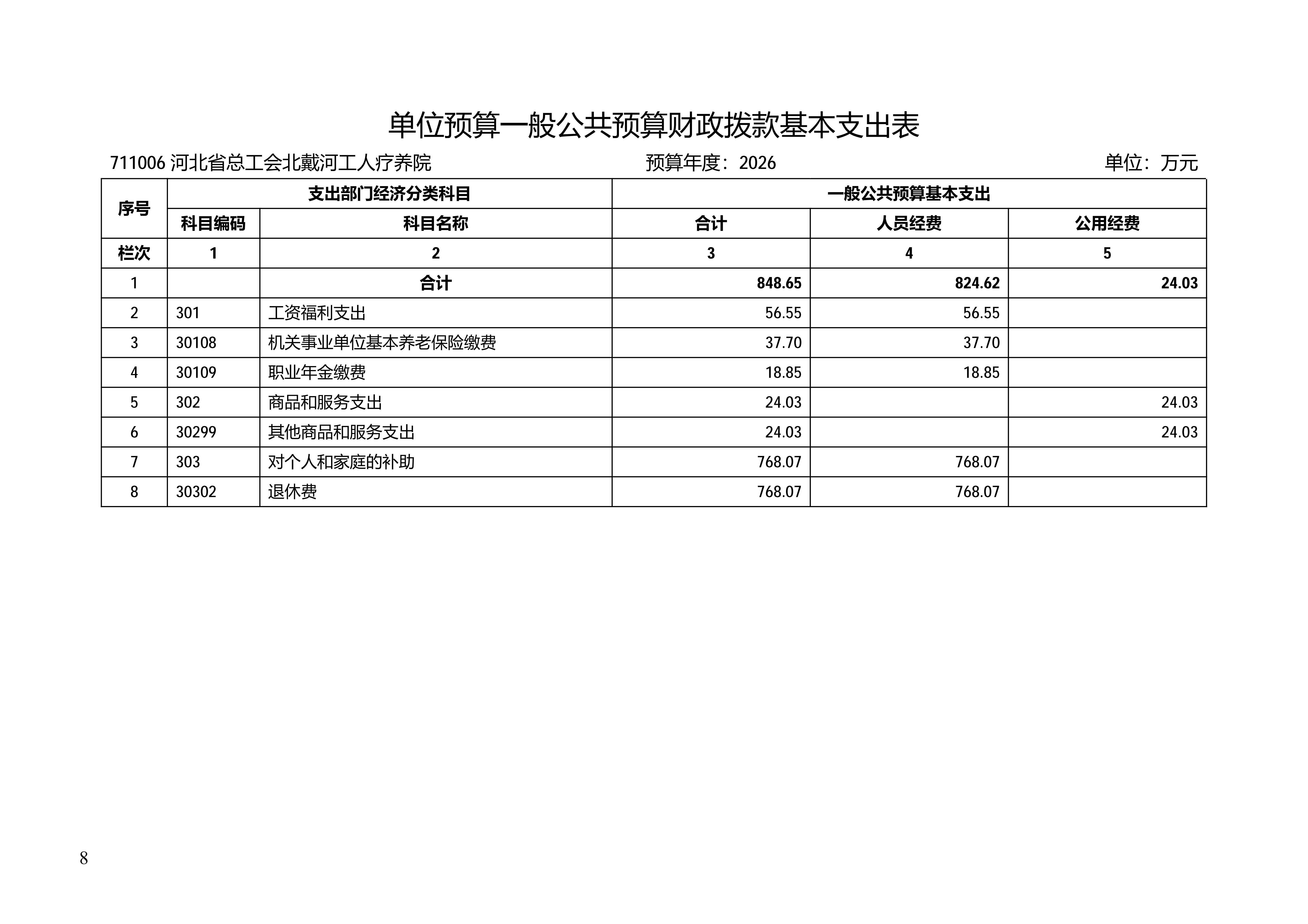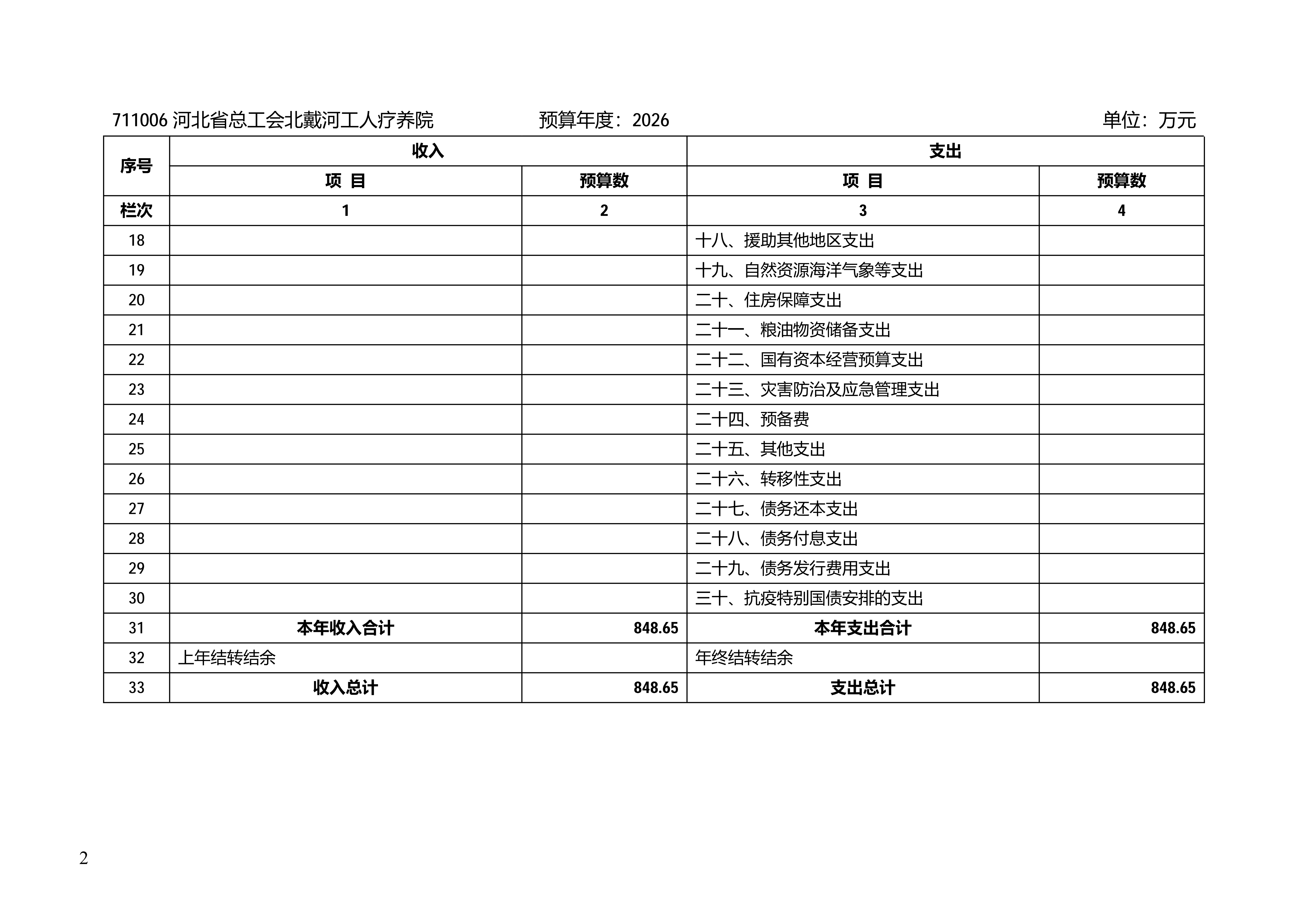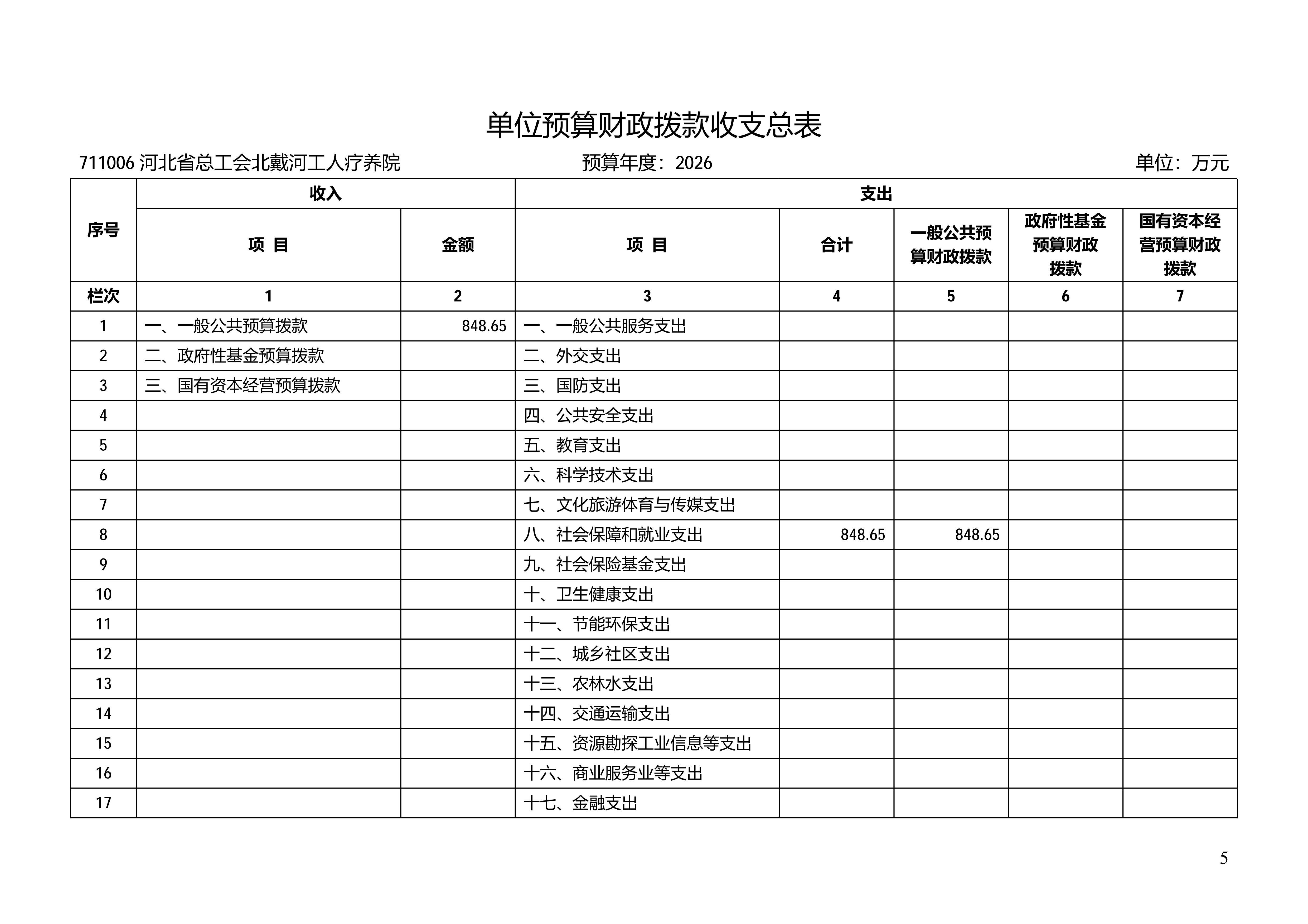 河北省总工会北戴河工人疗养院2026年单位预算信息公开