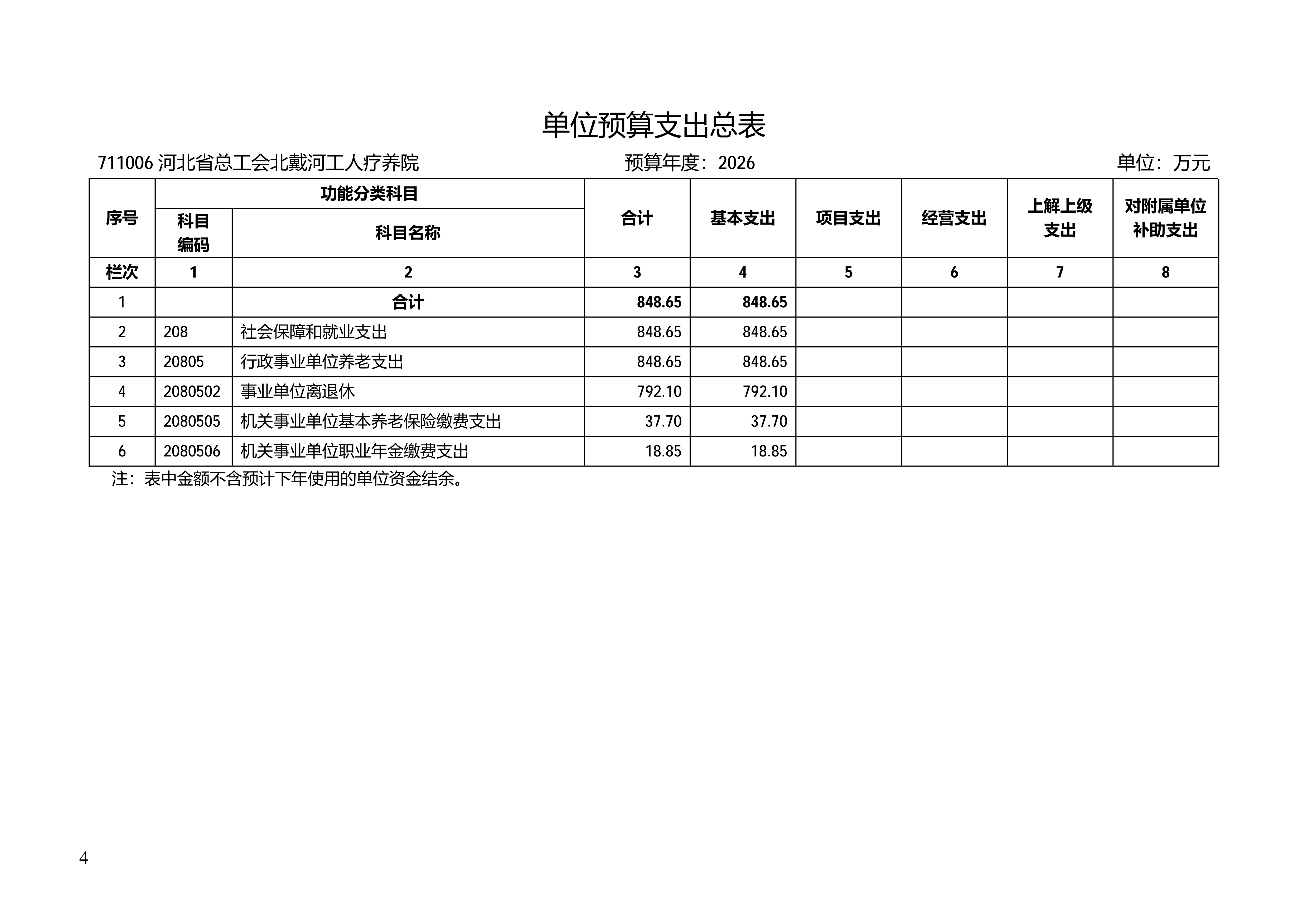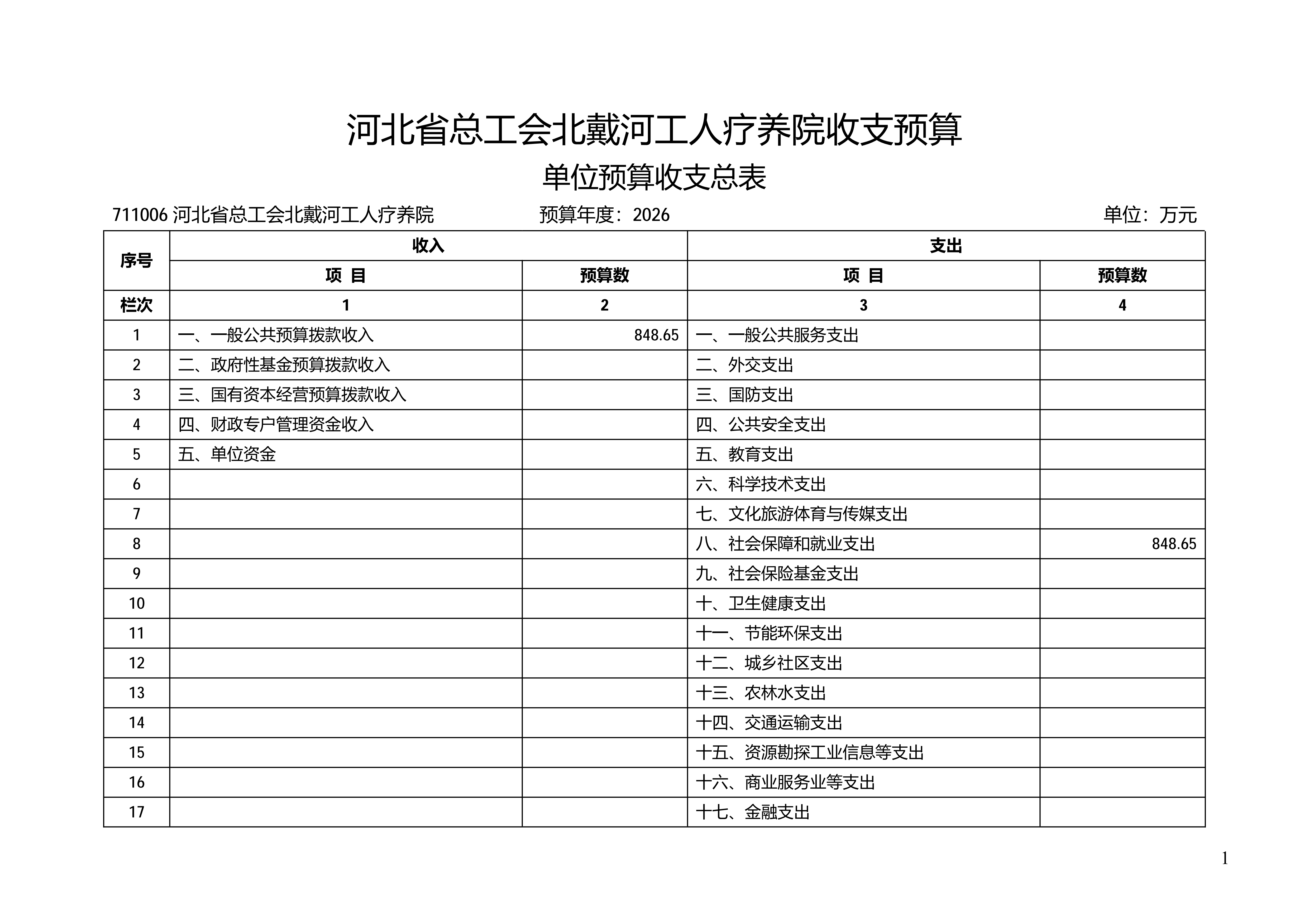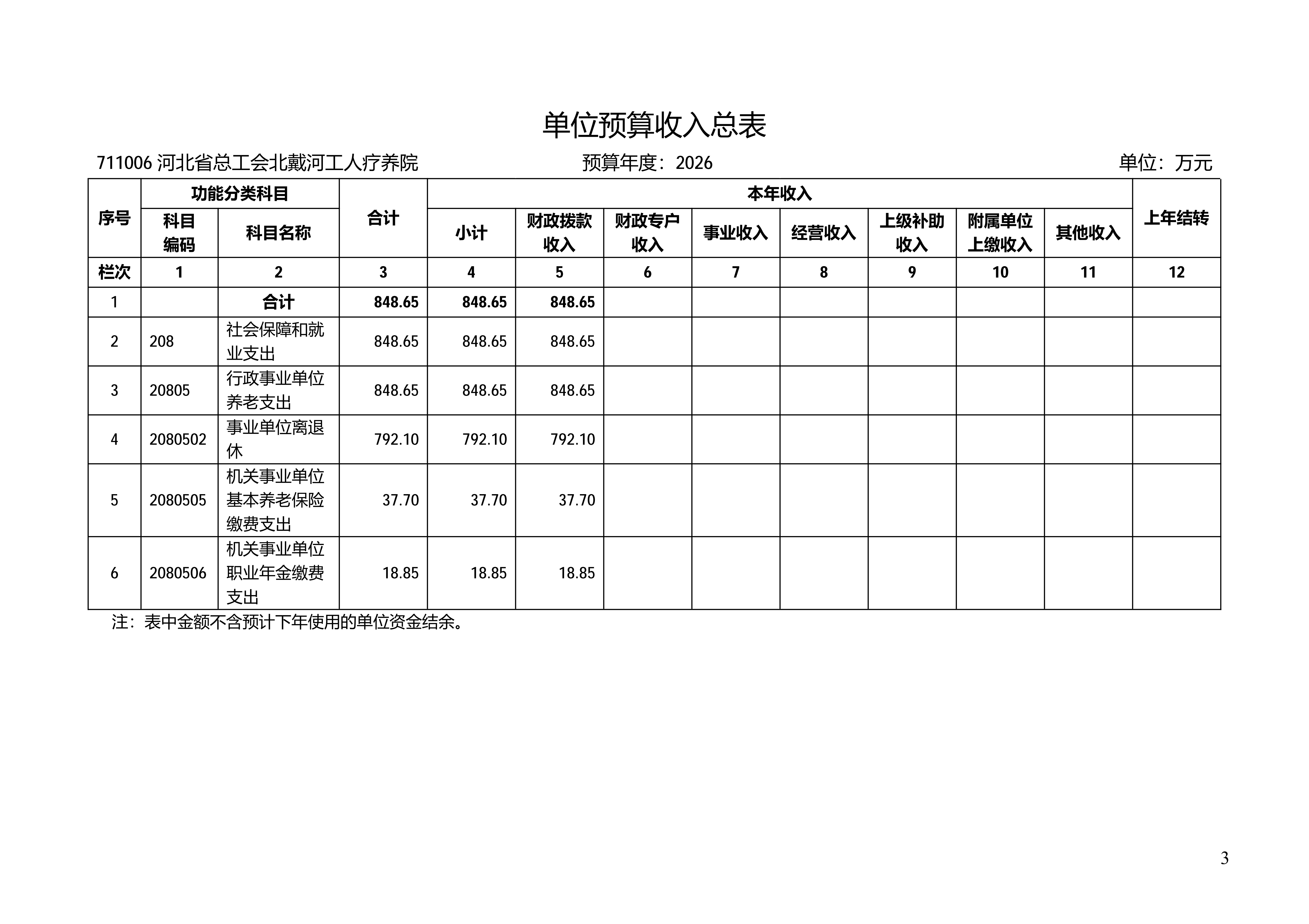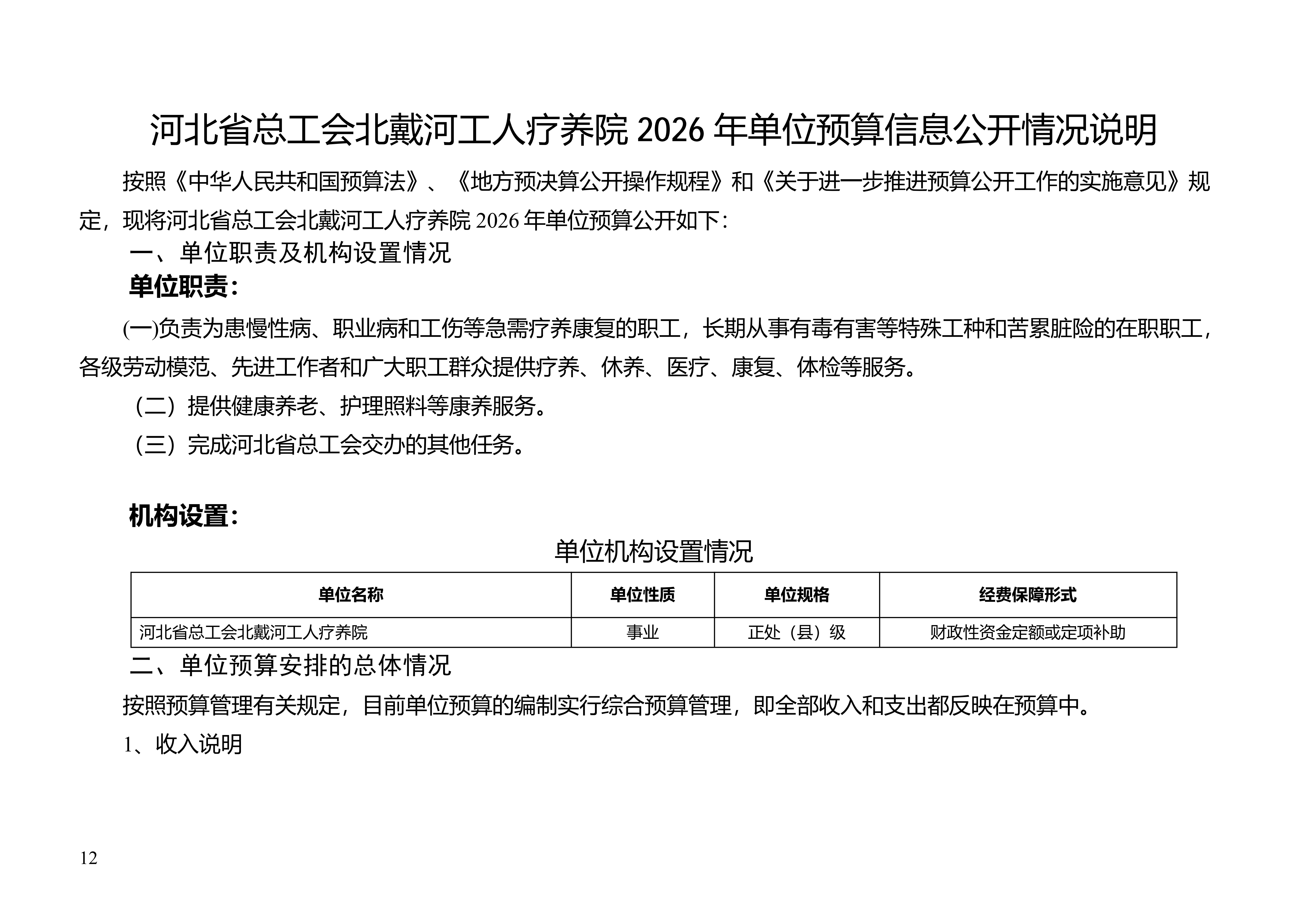 河北省总工会北戴河工人疗养院2026年单位预算信息公开